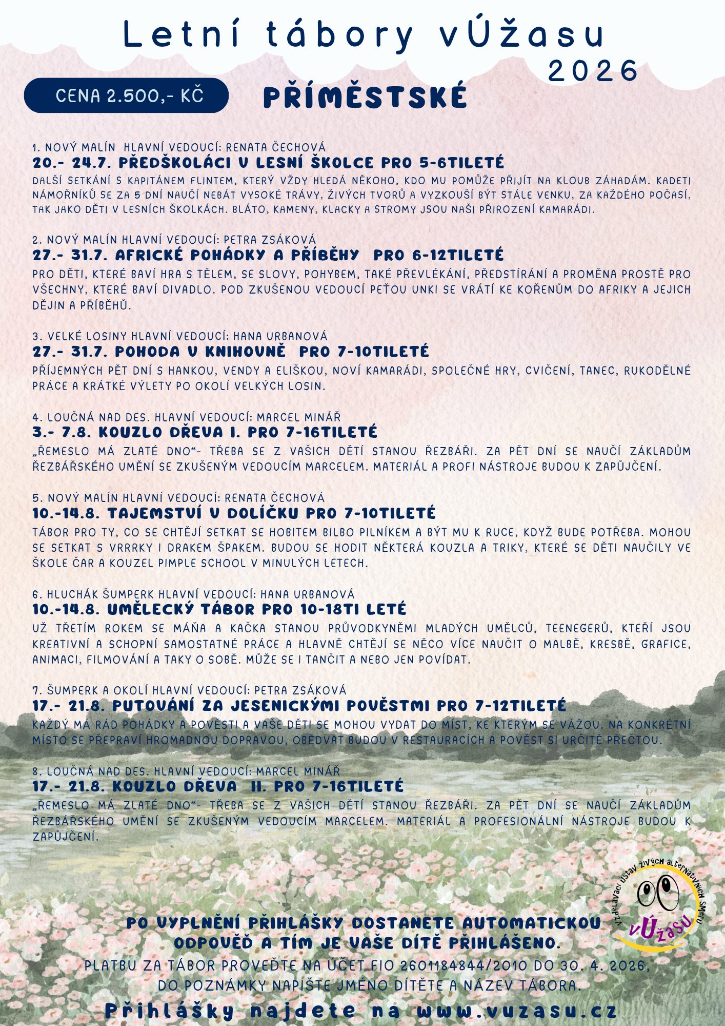 lesní školka, programy pro školy, letní tábory, pobyty pro rodiny, akce pro veřejnost